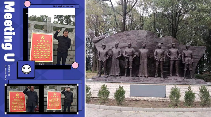 接着,我们走到纪念碑的入党誓词牌子前,分别举起了右手,庄严地重温了入党誓词,我心中暗暗地想“一定要继承革命先烈遗志,永远跟着共产党走,不忘初心,牢记使命,全心全意地为人民服务,教好书,育好人,为党的教育事业奋斗终身。”
