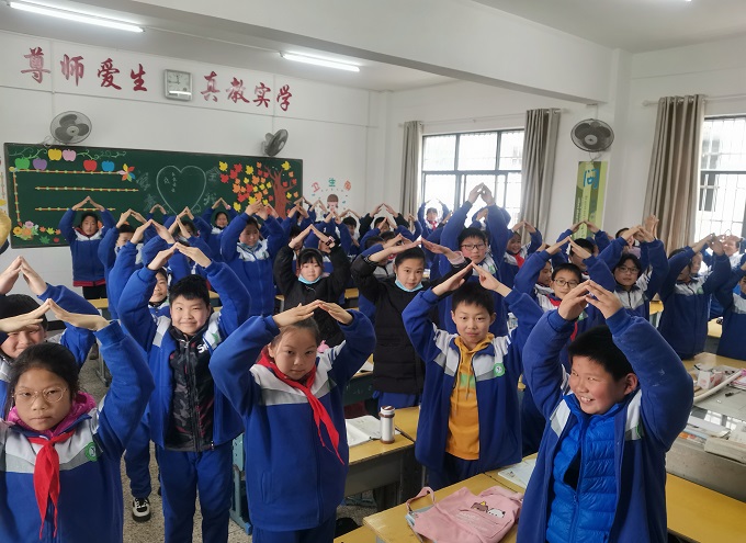 室内课间操启动以来,各班主任认真组织,学生们热情参与。每次音乐响起,学生们就整齐地站在课桌旁跟着欢快的音乐节奏点点头、伸伸臂、耸耸肩、扩扩胸、扭扭腰、踢踢腿,个个脸上绽放着开心的笑容,实验小学莲花校区五年级2班的孙金烁同学说:“我很喜欢做这套室内课间操,特别好玩!” 班主任龙老师也在课间陪同学生一起锻炼身体,她表示:“自从开始做室内课间操,学生们脸上的笑容更多了,上课状态也有了明显的改善。”有班主任将学生室内大课间视频分享到班级群,家长纷纷点赞!
