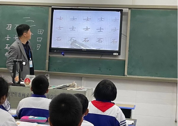 活动中,吕迎光老师围绕书法知识、书法技巧等方面的内容做了耐心细致的讲解,并亲自示范,在二年级为广大老师上了一节硬笔书法指导课。高超的水平、漂亮的字体引得孩子们啧啧赞叹。孩子们纷纷拿起手中的笔,在老师的讲解和指导下进行书法临摹,感受书法的独特魅力。