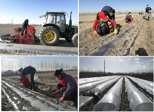 连日来,阿瓦提县拜什艾日克镇托万克塔勒克村1小队的田地里,种植大户艾力·马木提正在承包的203亩土地上种植从和田地区引进的新品种—和田红葡萄,十几名村民正在为新栽种的葡萄树苗培土。据了解,此次流转的203亩土地涉及34户村民,每亩土地以780元的价格流转出去,同时每天聘用十几名村民到地里干活,每天都有收入