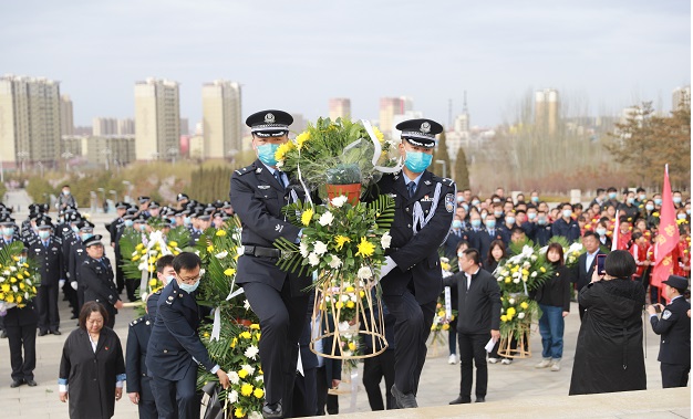 清风网讯(通讯员:包头铁路公安处 崔杰 )翠柏青松伴英烈,清明祭扫寄哀思。在2021年清明节来临之际,为缅怀革命先烈,弘扬爱国主义精神,传承革命优良传统,扎实推进党史学习教育和公安队伍教育整顿,4月2日,包头铁路公安处在井坪公园烈士纪念广场开展“弘扬英烈精神 争做忠诚卫士”主题祭奠活动,机关所队干部民警80余人参加了本次祭奠英烈活动。