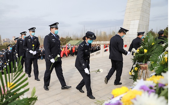 在肃穆庄严的氛围中,全体民警现场学习了包头市革命斗争历史,聆听了革命烈士为保卫国家和人民利益献出宝贵生命的英雄事迹。然后全体民警脱帽、肃立,向英烈们默哀一分钟,深切缅怀为维护国家安全、社会稳定和人民安宁英勇捐躯的革命先烈和公安英烈。