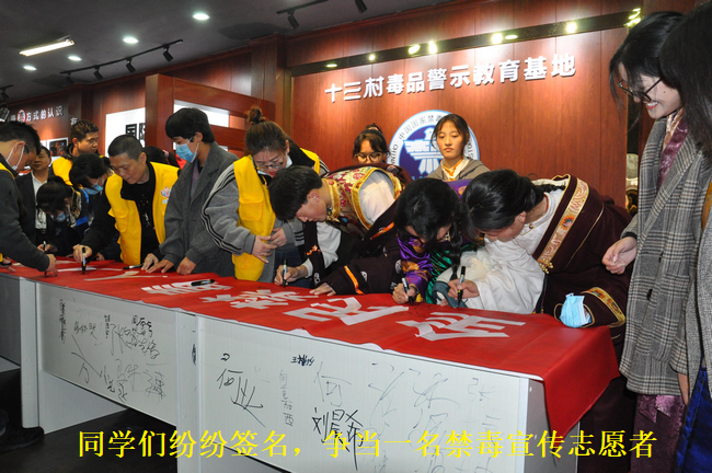同学们参观后兴奋不已,纷纷在“全民禁毒、人人参与”的横幅上郑重地签下了自己的名字,表示要争当一名禁毒宣传志愿者,将禁毒知识带给其他同学和朋友。