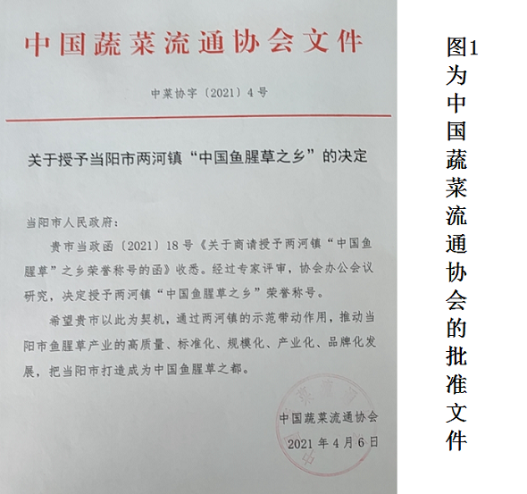 清风网讯(当阳市两河镇农办 : 史风波)4月16日,笔者从湖北省当阳市两河镇党委书记童梦处获悉:该镇已收到中国蔬菜流通协会的批准文件,已成功申报“中国鱼腥草之乡”。