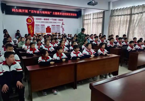 清风网讯(码头镇关工委 :舒国珍 谈金华)欲知大道,必先为史。历史是最好的教科书。为引导广大师生学“学史明理、学史增信、学史崇德、学史力行”,培养担当民族复兴大任的时代新人 。4月15日,瑞昌市关工委“五老”关爱报告团陈 茂、胡瑞芳二名报告员,在市关工委执行副主任胡家连带领下走进码头中学,为该校八年级2个班共110名师生进行党史学习教育宣讲。