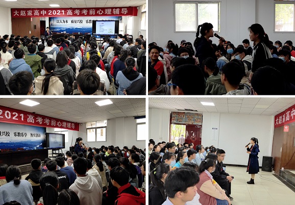 清风网讯(红安县大赵家高中:郑传兴)为进一步缓解高三学生考前心理压力,帮助学生调适和排解心理上的烦恼,从而成功战胜高考,4月23日,红安县大赵家高中邀请心理咨询师石林曌老师,为高三学生做了一场精彩纷呈的心理辅导讲座《高考前的心理减压与情绪调节》,全体高三学生听取了讲座。