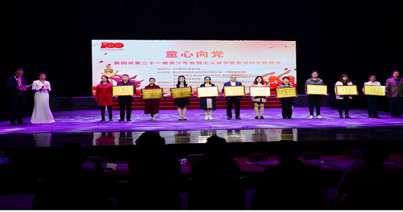 清风网讯 (通讯员:胡晓霞 万丹) 为全面落实立德树人,厚植爱国主义情怀,向党的百年华诞献礼,4月23日,黄冈市第二十一届青少年爱国主义读书教育——“童心向党”展演活动在湖北省黄梅戏剧院举行。在全市选送的40多个节目中,英山县白石坳小学脱颖而出,代表英山参加现场总决赛。决赛中,该校师生共同表演的《我和我的祖国》舞蹈情景剧,以优异的成绩勇夺二等奖。