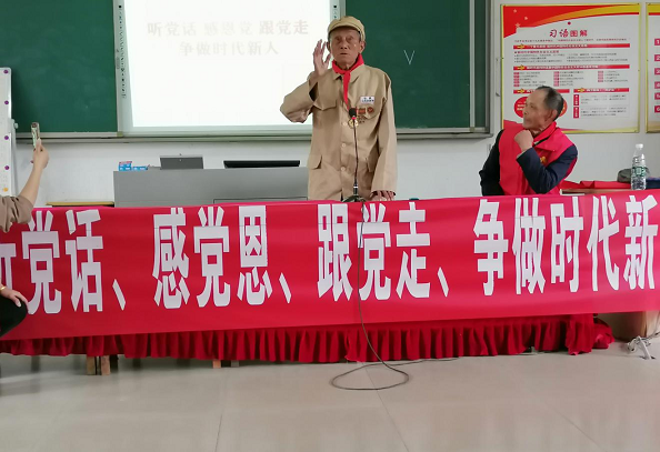 现场,同学们通过观看和聆听《中国共产党百年述职报告》、建党百年主题MV《少年》视频、“五老”报告团成员朱银巨、梁金先老人分别宣讲中共港瑞区委、区苏维埃政府与国民党、军阀斗争和瑞昌市“不忘初心、默默奉献、深藏功名60载的92岁战斗英雄胡华纯的故事、抗美援朝老战士何仁喜简述自身在朝鲜亲历的故事,为青少年唱起了《中国人民志愿军战歌》。他们宣讲共产党人的动人故事,引导了青少年从小听党话、感党恩、跟党走,主动学习红色的故事、英雄故事,做一个能担当民族复兴大任的时代新人。