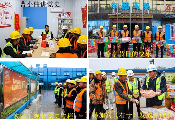 鉴于今年是建党100周年的特殊年份,项目党支部在慰问过程中增加了向农民工“送党史”环节,邀请各施工队负责人和班组长在项目部会议室听党史100年“专题课”。项目部第一党小组长曹小伟为他们讲述了《中国共产党百年奋斗历程简史》,重点介绍了我国改革开始以来,特别是党的十八大以来祖国建设新成就。接着,还组织农民工畅谈国家形势、家乡发展的巨大变化,分享他们的家庭幸福与个人奋斗历程,并参观了项目部庆祝建党生日的《党史宣传专栏》。