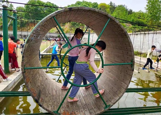 基地为同学们安排综合实践体验项目有多项,我们第五中队在教官的指导下,上午进行大脚板、水上冲关两个项目体验,下午进行cs、滑索体验,晚上举行联欢晚会。其他四个中队分别巡回完成所定项目。同学们都精神抖擞,有着拼博进取精神,展现团队风貌。