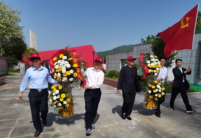 在红二十五军陶家河革命纪念碑前,举行了向烈士敬献花篮仪式,参加活动的全体党员在革命烈士纪念碑前,向为中国人民解放事业英勇献身的烈士鞠躬默哀和重温入党誓词。实验小学校长蔡干同志告诫全体党员不要忘记革命先烈的付出,要弘扬先烈的崇高精神,继承先烈的革命遗志,珍惜革命先烈用鲜血和生命换来的安定祥和、幸福美好的生活,争当新时代人民好教师。