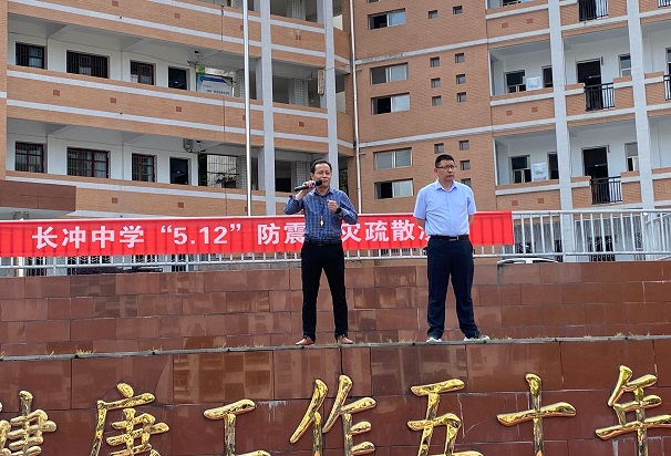 清风网讯 (通讯员: 汪嫚丽 饶正康 岳刚)为了提高全校师生的安全意识和应急意识,让学生掌握基本的自我保护知识和技能,保证全校师生在地震临震预报发布或地震发生后,快速、有序、高效地撤离,5月12日长冲中学进行了防震减灾应急疏散演练。