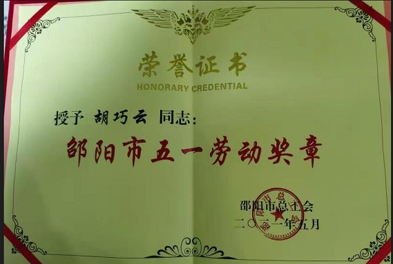 清风网讯(特约记者钟 鹏 通讯员邓鑫 黄又生) 5月27日,她捧回了“邵阳市五一劳动奖章”,同事们说“有为有位,当之无愧。”她,就是邵阳昭阳农商银行党委委员、副行长胡巧云。多年来,无论在何种岗位,她都是干一行爱一行,一心扑在工作上,兢兢业业、踏踏实实、勤勤恳恳,各项工作都想在前、干在前,奋发进取,甘于奉献。