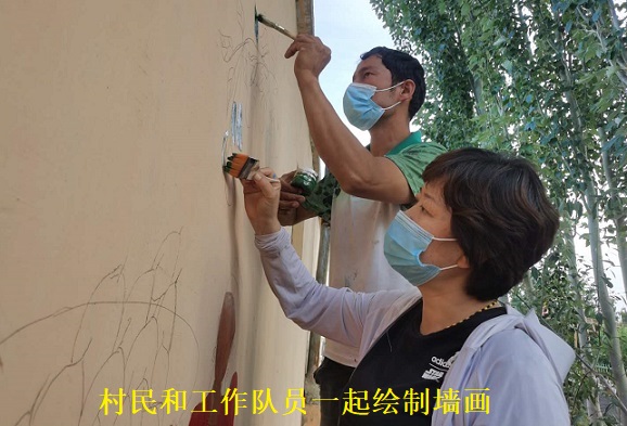 此次农民画的绘制,主要在村庄主干道两旁的墙壁上,通过朴实、简洁的墙画,展现了各民族人民共同生活、团结互助的主题,充满了浓厚的生活气息、鲜明的时代特征和民族特色。工作队、村干部和农民群众一起合作,完成了一幅幅作品,得到了村里群众的称赞。