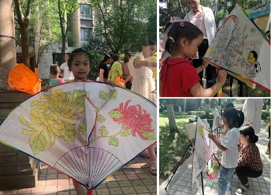 除了包粽子,亲子涂鸦画风筝也是本次活动的一大亮点。活动现场,老师给每一位小朋友发放了一只白色风筝和各色彩笔,风筝上有各种卡通图案,老师让小朋友们自己动手给风筝涂上自己喜欢的颜色。老师刚刚讲完,小朋友们都迫不及待的自己动手涂了起来,有的涂了蓝天白玉,有的涂了红花绿叶,还有紫色的唐老鸭,粉色的小猪佩奇等等,家长们在一旁认真观看,不时给予指导,活动现场气氛十分活跃,不一会儿,一幅幅带有个人特色的手工风筝就完成啦,小朋友们看着自己完成的风筝都露出了喜悦的笑容。