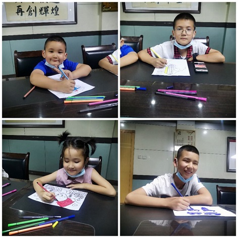 随后,志愿队伍与小朋友们一同开展爱国手抄报绘画,通过指导小朋友花五星红旗、天安门等图案,营造了良好的爱国氛围。