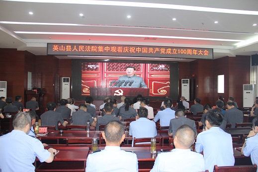 清风网讯(通讯员:童曙明)7月1日,湖北黄冈市英山法院组织全体干警集中收看中国共产党成立100周年大会电视直播,并召开庆七一总结表彰大会。