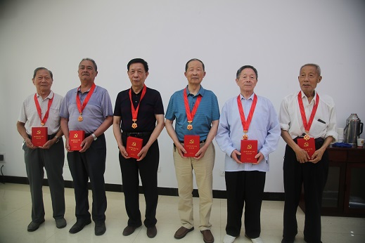 随后,院长汪峰带领全体参会党员干部面对党旗,重温入党誓词。法院领导为7名老党员发放了“光荣在党50年”纪念章。表彰了3个先进党支部、3名优秀党务工作者、15名优秀共产党员。