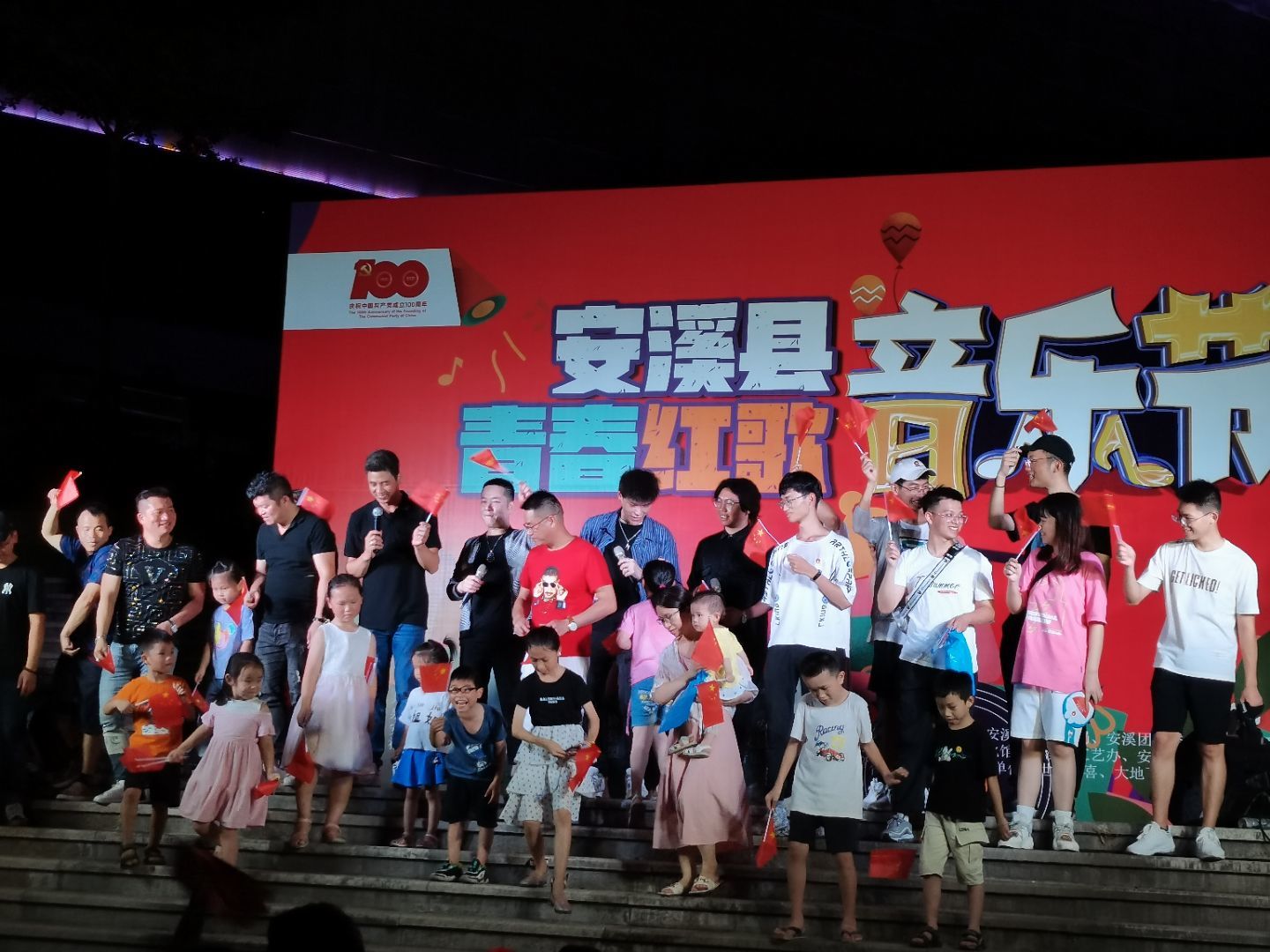 音乐节于晚上七点准时开始,现场先后演唱了《飞得更高》、《最美的太阳》以及《改变自己》等青春歌曲,随后一首《没有共产党就没有新中国》引燃全场氛围,最后活动在歌曲《我和我的祖国》以及《歌唱祖国》中落下帷幕。经过这次红歌会,实践队成员更加坚定了对社会主义和共产主义的理想信念,牢记革命传统和党的宗旨,做到心怀坦荡、光明磊落,明确奋斗目标,也对接下来两天的活动充满了信心和动力。