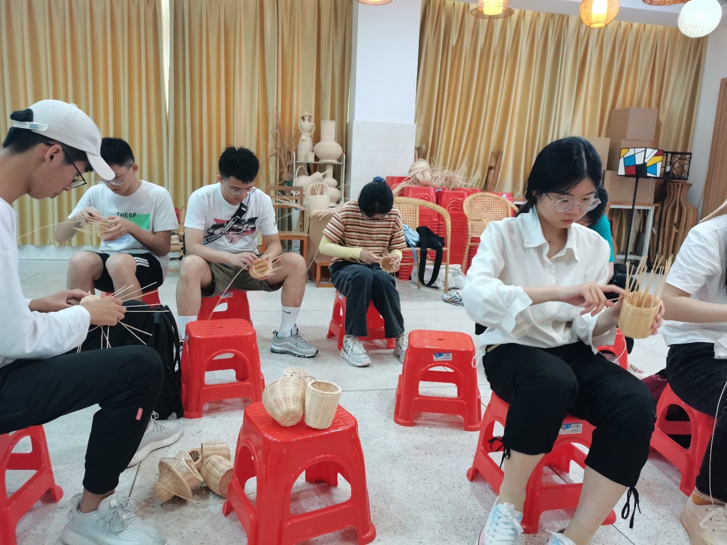 7月12日上午9:00实践队前往安溪华侨职校安溪藤铁工艺博物馆参观。首先,博物馆讲解员吴文靖向实践队队员们介绍了藤铁工艺的历史、制作所需要的材料及其亮点。 其次队员们在专业竹藤编指导老师朱素丽的带领下进行手工实践编织藤条小工艺品。