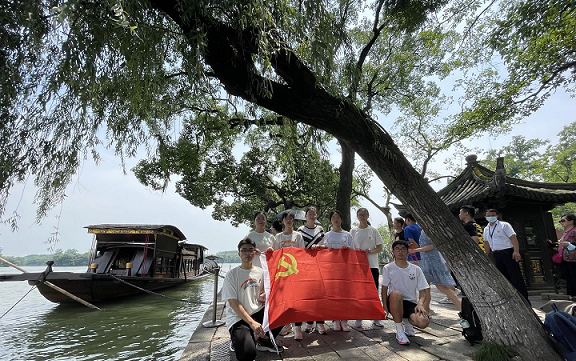 在嘉兴南湖的实地调研活动中,实践团走近了中国共产党的诞生地—南湖红船。雕梁画柱的红色画舫船静静伫立在南湖边上,就是这样一艘小小的船却在一百周年前见证了中国共产党党史上最为开天辟地的大事件—中国共产党的诞生。它的特殊意义和重要性让实践团成员们肃然起敬,不禁在此驻足良久,感念共产党一路走过的艰辛历程。带队老师吴勇辉更是在红船旁为实践团成员们上了一节生动的党史课,为大家详细解释和介绍了“红船精神”的内涵和意义,让小组成员更加坚定其爱党信念。接着实践团成员们走进了南湖革命纪念馆,这里陈列着在不同历史时期一代又一代的共产党人在国家和民族危急存亡之际,救国家和民族于危难之中的历史物证,于同学们而言,它们都是最生动鲜活的党史缩影。最后,在纪念馆后的宣誓墙前实践团成员进行了宣誓活动,铿锵有力的入党誓词是大家对党最大的敬意。南湖之行让实践团成员们领略到了中国共产党和中国共产党人这一路走来的坎坷与艰辛,激励着他们新时代青年人跟着党走的坚定决心。