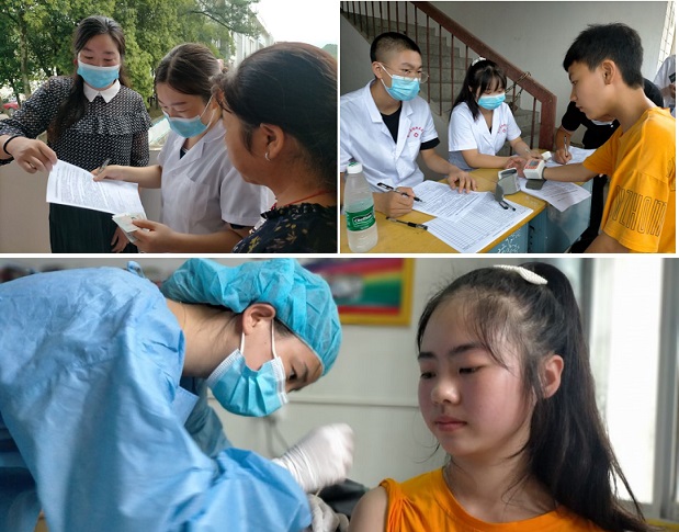 英山县杨柳中学积极组织15-17周岁年龄段学生进行疫苗接种