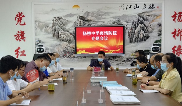 全面加强校园疫情防控。针对当前严峻的疫情形势,英山县杨柳中学选优补强学校疫情防控专班,制定完善应急预案和工作方案,全面升级疫情防控工作,进一步加强校园封闭管理力度,严格落实进出登记和测温制度。加快学校“留观室”、“医务室”建设进度,加大学校口罩、消毒液、测温仪等防疫物质的储备量,确保秋季开学后各类防疫物资充足够用。