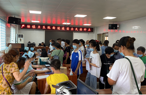 清风网讯(通讯员:钟云娟) 8月10日,新邵县严塘镇中学学生在镇中心卫生院新冠疫苗临时接种点进行接种,该校谭敏校长率领行政人员、全体班主任参与组织,现场井然有序,接种学生排队等待、医护人员忙碌着,学生通过预检、登记、接种、留观等程序顺利完成新冠疫苗接种。至此该校12至17岁青少年接种工作已全面铺开。