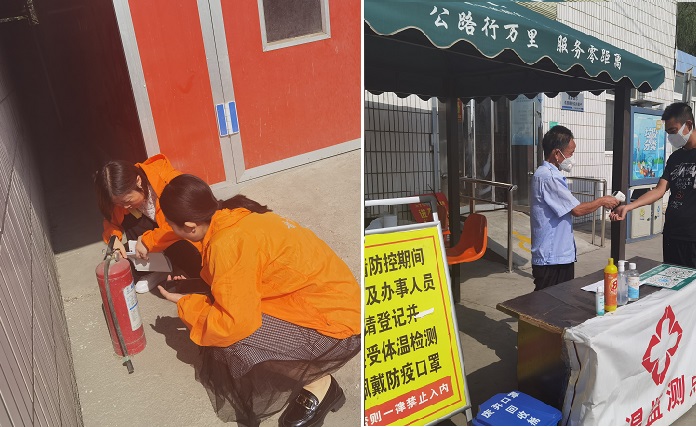 该所采取定期督查和不定期抽查方式,对国道247线景昭公路秦安服务区、中滩停车区的疫情防控、安全管理、服务设施、环境卫生等工作开展监管。重点查看进出服务区人员体温测量、健康码和出行码核验、相关信息登记和室内外消杀、各类消防器材配备和摆放位置、消防器材定期送检、更换药粉及充压、是否在有效期内且能正常使用、安全有序引导车流客流、停车场内各类车辆在规定区域整齐停放、公共厕所清洗消毒、废水废油集中处理、垃圾房垃圾桶经常清理、垃圾及时清运、超市餐厅和修理厂证照取得情况等。