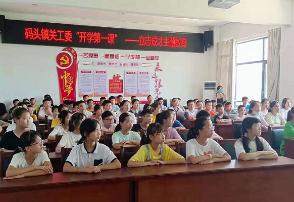 清风网讯(码头镇关工委:袁佳佩、谈金华) 志不立,天下无可成之事,虽百工技艺,未有不本于志者。9月3日,瑞昌市码头镇关工委走进码头中学开展《开学第一课》“立志成才”主题教育宣讲活动。