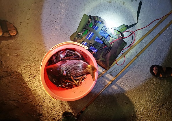 清风网讯(特约记者:钟鹏 / 通讯员:李思) 9月6日凌晨1点,有一团伙开着多台小车,偷偷来到新邵县龙溪铺镇楠木社区到龙溪河进行非法捕捞,有两人下河电鱼,多人在路上放风,被新邵县生态保护志愿者协会反电鱼志愿者发现,遂先后向协会和社区负责人反映,15分钟后社区和协会负责人带人先后赶到现场进行围堵,因团伙人员及时示警,电鱼人丢下电鱼设备和渔获物(约8KG)后迅速逃脱,仓促间将一小车遗弃于路边。