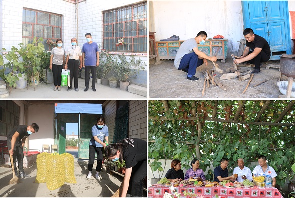 教师节期间,工作队慰问退休老教师吐尔逊·托合提,在慰问中详细了解了他家的生活情况以及仔细询问了在生活中遇到的困难和问题,鼓励他积极面对生活,并送上节日慰问品致以节日的问候和与祝福。吐尔逊·托合提激动的说:“工作队犹如一座灯塔,照亮了我们广大村民前行的道路,更坚定了实现乡村振兴的决心和信心。”在中秋节来临之际,工作队更是通过团结联谊、走访入户、村民夜校等多种方式传递着中华文化的精髓和魅力。在老党员家里共度中秋,在孤寡老人家里开展整治环境卫生等活动,给辛苦忙碌一年、采摘幸福收获果实的农民群众带来了一份温暖和祝福,不仅增强了村民的获得感、幸福感、安全感,同时也凝聚起了团结进取、奋发图强的强大精神力量,为实现乡村振兴、焕发乡风文明助力添彩。