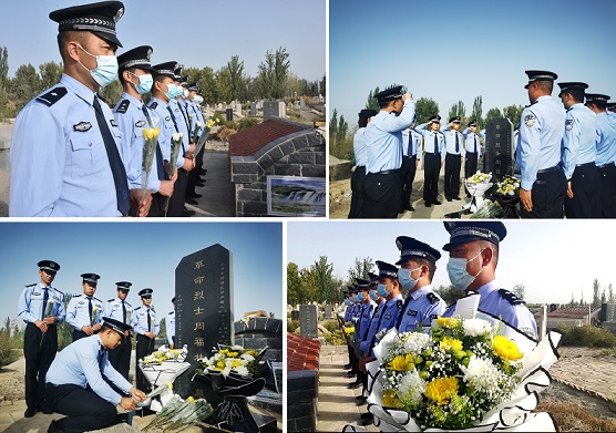 9月28日早上,沙雅县公安局组织民警代表前往陵园对周福林烈士和因公牺牲民警开展缅怀祭扫活动。面对先烈墓碑,民警们庄严肃立,共同学习重温了先烈们的感人故事和精神,在默哀和重温入警誓词中再次重温入警初心,铸牢忠诚信仰。