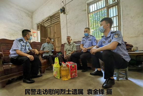 慰问遗属,传递组织关怀。组织民警走访慰问驻地烈士遗属,与他们促膝交谈、叙家常、问冷暖,对烈士为党和国家的无私奉献表示钦佩,对烈属做出的巨大牺牲表示慰问,并为他们送去慰问品,把组织的关怀送到烈属的心坎上。