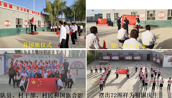 早上10点,五十名党员、团员和群众代表就在村委会广场集合,参加举行庄严的升旗仪式,伴随着雄壮的国歌声,大家一起唱国歌,行注目礼,每个人内心都感到无比自豪。升旗仪式上,第一书记哈力木拉提·买合木提同志作了“不忘初心 牢记使命 我们永远跟党走”的讲话,通过讲述在中国共产党领导下,全国各族人民团结奋斗,新中国72年发展成就举世瞩目和第三次中央新疆工作座谈会以来新疆取得的发展成绩,号召广大党员、团员,牢记“不忘初心 牢记使命 永远跟党走”的誓言,带领群众全面做好乡村振兴工作,带领群众靠奋斗换来幸福生活,为家乡的建设贡献自己的积极力量。