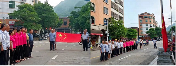 “起来不愿做奴隶的人们,把我们的血肉筑成我们新的长城……”上午8时,随着雄壮庄严的国歌声响起,五星红旗缓缓升起,现场的社会各界人士和社区老年朋友们庄严肃立,齐声高唱《中华人民共和国国歌》。伴随着歌声,人们向缓缓升起的国旗行注目礼,向伟大的祖国表示最崇高的敬意。