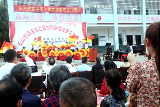凤山村支部书记蒋小武介绍,“参加演出的凤山村历届文艺宣传队,由本村中老年文艺爱好者和部分村民组成,现有骨干成员20余人,最大年纪73岁。本着老有所学老有所乐老有所为的理念发挥余热,他们不图名利不计报酬,主要是通过文艺演出推动移风易俗、树立文明乡风,提倡厚养簿葬,红白喜事从简。”
