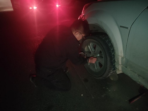 民警判断车辆发生故障,立即上前询问看看驾驶员是否需要帮助。经询问,民警得知车辆行驶中爆胎,车上没有更换轮胎的工具。民警立即从车内取出三角架警示牌放在车辆后方。随后,从警车里拿出随车携带的修车工具,帮助换轮胎,不到10分钟,民警娴熟地将轮胎更换好,帮助驾驶员摆脱困境,及时消除了道路交通安全隐患,驾驶员在对民警表示感谢后驾车离开。