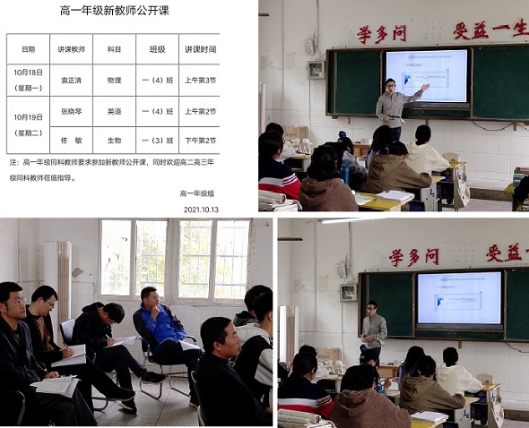 物理袁正清老师的《匀变速直线运动的速度与时间的关系》,教学环环相扣,讲、练、思结合;英语张晓琴老师的《A travel plan to Xi'an》,思路清晰,环节紧凑,循循善诱,调动了学生的积极性;生物佟敏老师的《核酸是遗传信息的携带者》,教态自然,充满活力,跟学生良好的互动,展现了青年教师的朝气与活力。