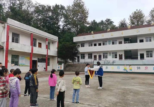 10.18日上午,在升旗仪式上,笕冲湾小学举行了本学期流动红旗颁发仪式。