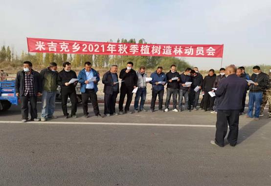 清风网讯 (米吉克乡人民政府:阿娜尔古丽•达吾提)近日,米吉克乡组织全乡15个村村干部、农民群众,共计4120人,在米吉克乡政府周围林带和戈壁滩开展秋季义务植树活动,此次活动共3天。