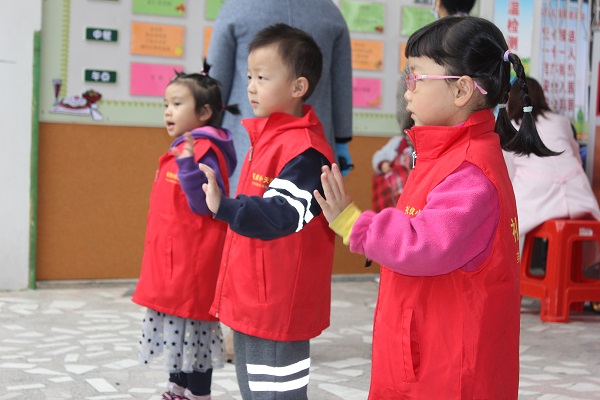为更好地培养幼儿从小讲礼貌、讲文明、乐于帮助他人的好品质,打造平安的文明的礼仪校园,该园开展“礼仪小天使”为主体的文明有礼文明实践活动,校园里每天六名幼儿,穿上红马甲,整齐地站在园内大门口,欢迎小朋友并提醒每位进园的小朋友按指定路线来到教室;马路边两名保安和行政后勤值班人员组成的护园队,迎接小朋友的到来,家长止步于园门口,将幼儿交给值班老师手中,确保幼儿安全进园的同时,注重幼儿及家长的文明礼仪。以“小天使们”的微笑和文明语言来来动全体师幼及家长,用以达到一个安全文明有礼的校园。