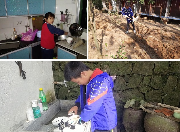 学校政教处根据学生年龄和班级特点,并结合家庭和学校平时忽略对孩子、学生的教育短板来进行查漏补缺。要求“双减进行时”的假日布置不一样的、对孩子有教育意义的家庭作业,每班选一样完成。例如一,二年可布置给家人捶背、洗脚、折被条;三、四年级可选择打扫卫生、做饭、洗碗、洗衣服;五年级的可选择种菜、抬粪、喂猪、放牛、放羊等什么的;并要求三、四、五年级学生通过家务劳动落实后,体会到家人们劳动的辛苦,帮助家人完成了力所能及的家务劳动,又懂得劳动创造了财富,劳动创造了美内涵,同时完成一篇日记或作文。让学生在玩中学、学中玩,使“双减”下的学生假日家庭作业富有新意。