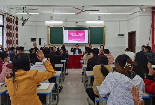 清风网讯(从江县东朗镇中心小学:潘正权)为切实发挥工会联系职工的桥梁纽带作用,在做好疫情防控前提下,2021年10月25日下午,东朗镇中心小学第三届工会委员会选举大会在中心小学录播室召开,东朗镇中心小学班子成员、教师代表、幼儿园教师代表共41人参加了会议会,会议由原代理工会主席、中心小学副校长陆杰同志主持。