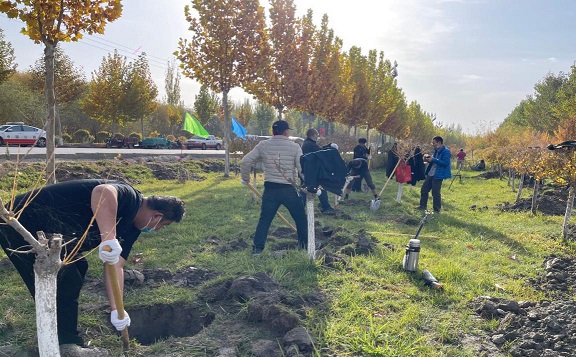 10月28日,乌什、温宿执法大队组织全体干部职工24余人在阿克苏市稻香路举办绿化植树造林活动,以实际行动践行“绿水青山就是金山银山”的发展理念。