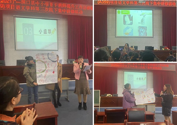 据了解上午的培训由培训学员罗芳老师进行第一次《猫》的授课,罗芳老师用声情并茂、睿智而又富有逻辑的授课,不断引发学生的思考与共鸣。现场活动气氛热烈、掌声阵阵。下午,班主任龙玉春老师带领全体学员开展了“温暖相识——团队破冰”活动。活动主要分五个小组进行。各小组成员聚在一起,相互认识后,又群策群力,并在组内分享自己对上午罗芳老师教学中的观察观点。通过长达一小时的分工合作,组内配合默契,大家各扬其长,有条不紊地设计着海报在随后的展示环节中,各小组都自信大方地分享了本组海报的设计理念及自己创造思路。现场气氛活跃,成员间的信任感与融入感均得到了加强。“吾生也有涯,而知也无涯。”为师一日,便不可荒废半日。经过一天充实而又有意义的培训,老师们都收获满满。也引领者老师们不断提升自我、追求卓越,为实现“百花绽放、百舸争流”的洞口县教育生态而持续努力。