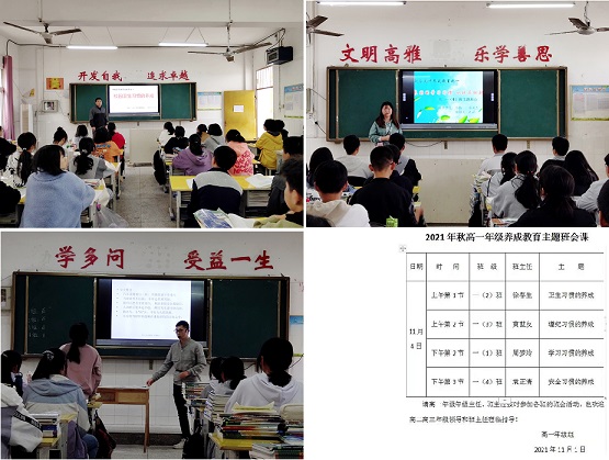 清风网讯(红安县大赵家高中:郑传兴)习惯决定命运,好习惯受益终生,坏习惯则影响一生。为帮助学生逐步养成良好的行为习惯和学习习惯,促进学生全面发展和健康成长,培养学生健全的人格,为今后的学习生活奠定良好基础。11月4日,红安县大赵家高中高一年级组织开展“养成教育”系列主题班会活动。