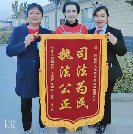 清风网讯(沙雅县人民法院:宋家欣)“太感谢你了,古尼沙法官,要不是你出面为我调解,不知道什么时候才能拿到这笔钱,你真是帮了我的大忙。”晚上八点当事人吴某将一面印有“执法为民司法公正”字样的锦旗送到了还在大门口为当事人做释法工作的法官古尼沙手中。