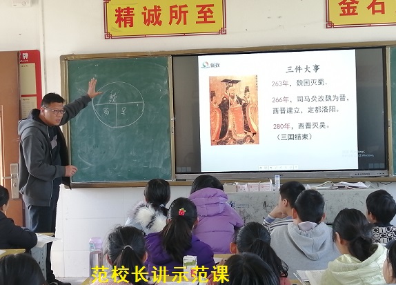 范校长带来的是七年级历史课《西晋的短暂统一和北方各族的内迁》,课上范校长以历史典故“何不食肉糜”导入,激起了同学们浓厚的学习兴趣和强烈的求知欲。接着范校长以印发的导学案为引,引导学生自主预习、合作探究、交流展示该课每一目的相关知识,整堂课以学生兴趣、爱好为动力,通过有趣的历史故事与活动激发培养学生的学习兴趣,学生在快乐中学习!这堂以学生为主体的示范课给学生和听课的老师留下了深刻的印象。