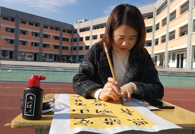 老师们聚精会神的一点一横,认真专注的一撇一捺,展现出对中华文化的景仰。笔墨飞舞间,一幅幅或隽秀柔美、或遒劲有力的作品在行云流水间,尽情展现个人书法才情。